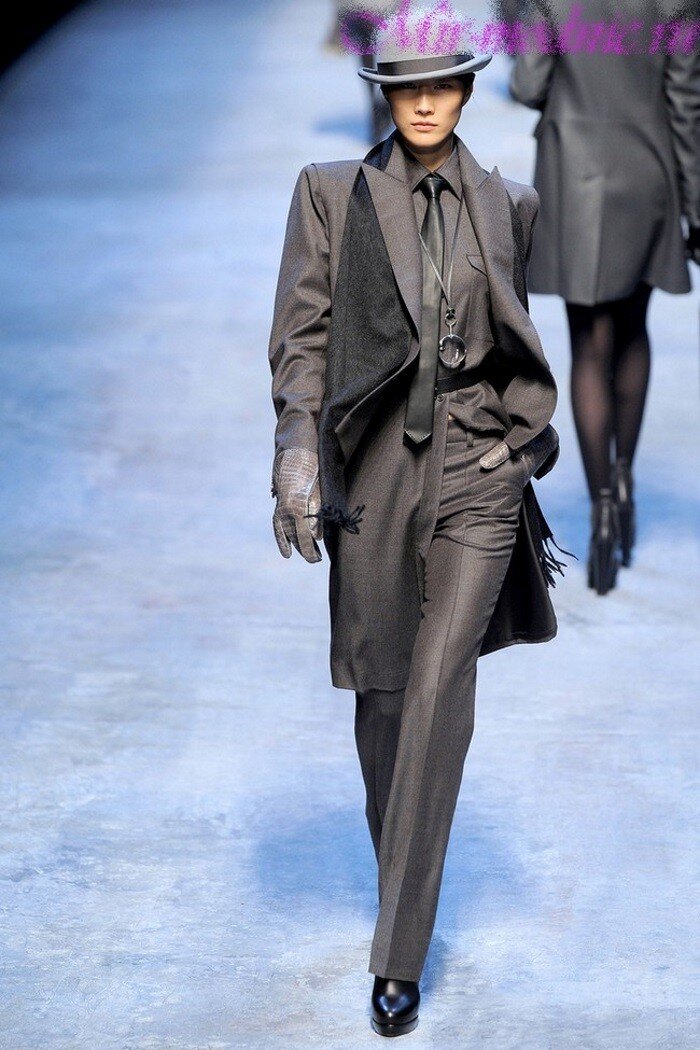 ● В мужском стиле: широкие плечи, строгий крой с прямыми линиями и спокойные, классические цвета.