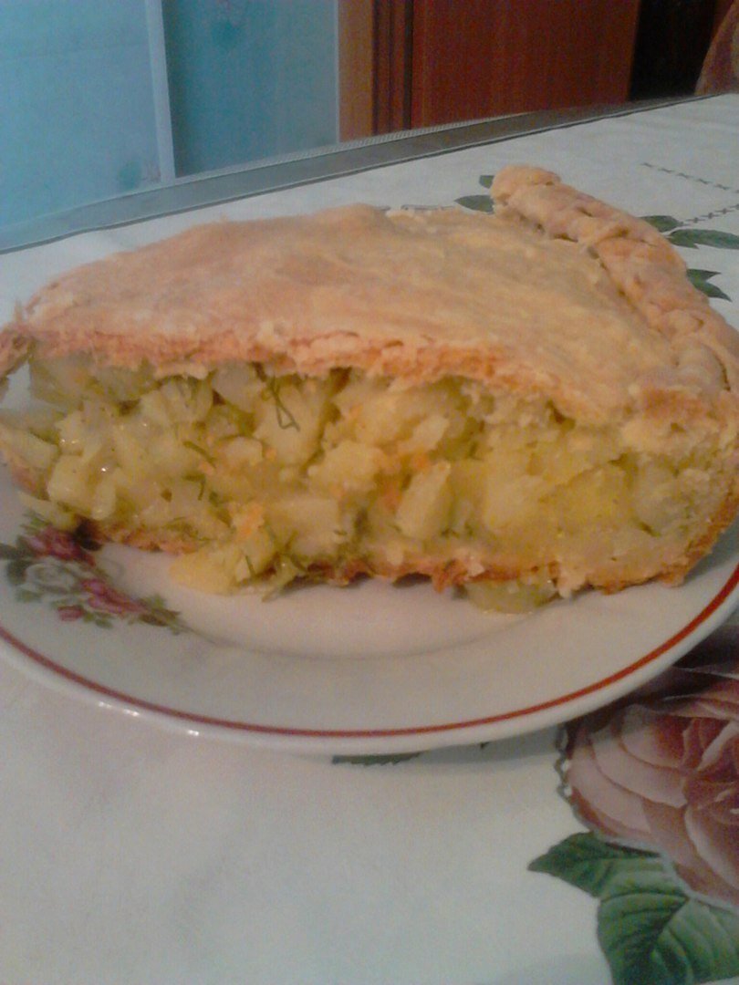 Что на русском столе, да и не только на русском считается королевой стола? Правильно – картошка. Помните в комедии "Девчата" героиня Н.Румянцевой перечисляла блюда из этого овоща, пафосно загибая пальцы. А я, хочу поделиться с Вами рецептом любимого картофельного пирога, который подойдет для полноценного воскресного или субботнего полдника. Тесто по моему рецепту получается рассыпчатым, а начинка нежная. Уверяю, никакого мяса не нужно, пальчики оближете. Картофель в пироге получается как бы запеченным, а значить сохраняет все свои полезные свойства. Картошка содержит крахмалистые вещества, примерно 2% — белки и 0,3 % — жиры. Так что не бойтесь набрать лишний вес. Ингредиенты: Тесто- пачка маргарина, растительное масло 2 ст.л., майонез 2 ст.л., 1 яйцо, 0,5 ст.молока, сода 0,5 ч..л., щепотка соли, мука. Начинка- картофель кубиками (взгляните на фото, картофеля должно быть много), репчатый лук кубиками (лука не жалейте, чтобы начинка получилась сочной), укроп, соль, перец, куркума,
