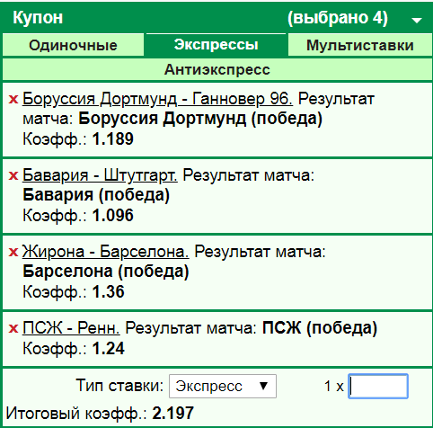 Постоянно, когда мне задают такой вопрос, я сразу отвечаю, что здесь будет минус. Но на самом деле здесь всё немного по-другому. Я отталкиваюсь от спросившего и учитываю сразу кучу разных факторов и оцениваю примерную силу знаний спросившего. Ну и всегда говорю, что будет минус. Если играть в прессиках победы фаворов, то будет минус на дистанции стабильный, а вот если покатывать индивидуальные, то можно получить реальный профит. Я довольно приличное время потратил на изучение этого момента, поэтому могу сказать, что не надо напрягаться и играть только линию открытия. Потому что я отследил кучу команд по линии открытия и примерно прикинул (визуально), что здесь не угадаешь совсем, прогнут к началу игры победу этой команды или нет. Отклонения, всё равно, совсем небольшие. Ведь в чемпионате выигрывать надо каждую встречу, нежели в кубке. Вот вчерашний кубковый пример, когда Барса два дня назад шла на выходе по 1.9, а к свистку на них давали 3.5. Все подсчёты шли по закрытию линии Пиннакл