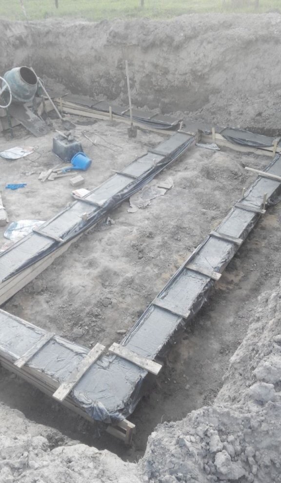 Сделали закладные отверстия под канализацию и воду. Под электричество сделаем позже, примерно на глубине 50 см.