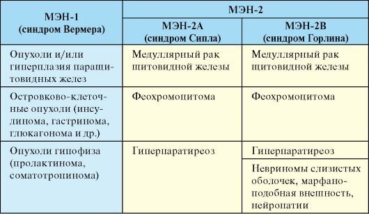 Различают 3 основных синдрома МЭН.