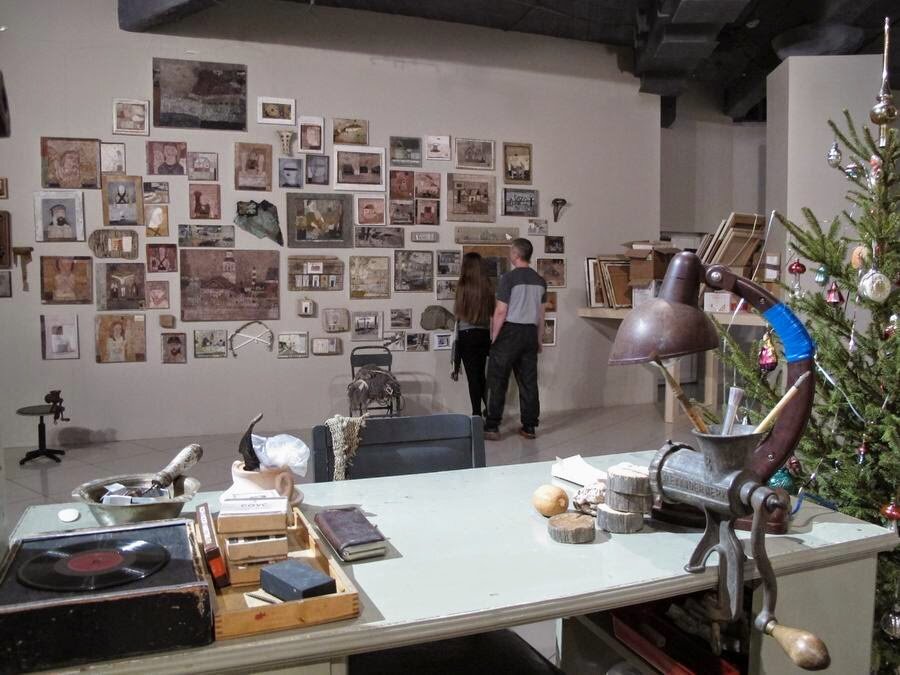 Второй этаж персональной выставки пермских художников Ольги Субботиной и Михаила Павлюкевича «Хроника движения» в Музее современного искусства PERMM цепляет центральной инсталляцией, воссоздающей мастерскую художника до мельчайших деталей. Собранием достаточно привычных предметов из интерьеров среднестатистической квартиры прошлого века, изготовленных из непривычного материала - "войлока", художники не оставят никого равнодушным. На периферии залов внимательному посетителю тоже есть что посмотреть. Это и гиды-котики и виртуальные коврики. И везде, везде обилие мелких деталей, которые можно разглядывать до бесконечности. Но обо всем по порядку. Если начать обходить залы против часовой стрелки, то натыкаешься на первую инсталляцию в виде какой-то отколовшейся облицовочной плитки или неудавшегося барельефа. Смысл ее я не особенно понял. Не помог даже обнаруженный со второго раза узкий ленточный фотофриз из запечатленных на пленку руин памятников архитектуры. Оригинал поста в моем блог