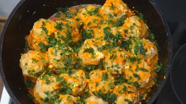 Затем на готовую пассеровку вертикально и плотнее друг другу составьте "салангани", аккуратно залейте кипятком изделия до их верхнего края и посолите и добавьте томатную пасту с момента закипания. Варить на сильном огне 5 минут, затем 7-10 минут на медленном огне с закрытой крышкой.Можно посыпать зеленью. Вот и всё! @cooking_for_happiness