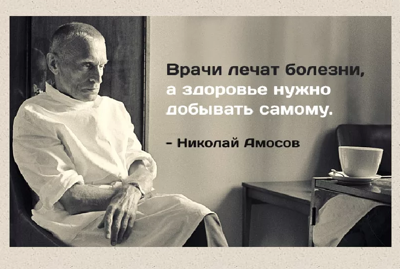 Это - высказывание Николая Михайловича. Он был уверен, что до 60 лет человек молод. И если органы не дают о себе знать серьезными симптомами, то не следует бежать в поликлинику при первом же почудившемся сигнале. Амосов утверждал, что в поликлинике у человека старше 60 лет всегда найдут болезнь и станут настойчиво предлагать "больше отдыхать" и использовать такие-то лекарства по списку. В то время как организму, наоборот, нужна физическая активность, а мозгу - умственная активная деятельность. Плюс социальная активность.