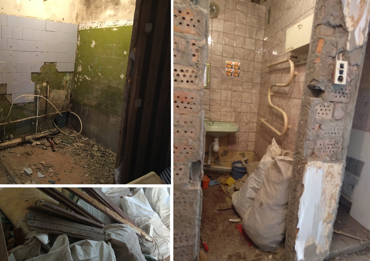 Наверное, большинство людей взглянув на эти фото, с болью вспомнят свой ремонт, особенно те, кто делал его своими руками. Полный хаос, бардак, стройматериалы и куча мешков со строительным мусором... Как представитель тех, кто недавно закончил ремонт, взглянув на фото, даже передергивает и понимаешь, что следующий ремонт будет не скоро... Но, глаза бояться.. а руки делают А вот и результат ремонта кухни в сравнении до и после Кухня просто шикарная получилась, цветовая гамма, расположение - все сделано на отлично! Вроде бы и просто с одной стороны, зато бюджетно, современно и выглядит супер! А теперь ванная комната, тоже в сравнение до и после: Тоже красиво и практично. Конечно, можно было бы где-то сделать лучше и удобнее, например унитаз слишком впритык к тумбочке и дверь стиральной машины не очень удобно открывать...но в условиях располагаемой площади, вариантов было не много и это надо учитывать! А то в интернете столько идей, только почему-то большинство рассчитано на не реальные