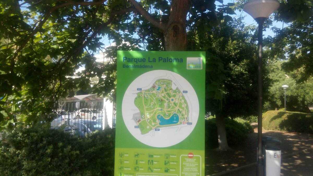 Есть под Испанской Малагой, небольшой городок под название Бенамальдена. Небольшой курорт с множеством зелени, хорошим пляжем и известным даже за пределами Испании яхт клубом. Мы с семьёй провели три недели в этом замечательном городке. И каждый день идя на пляж мы проходили шикарный парк. А название парка La Paloma. Парк примечателен тем, что в нем растёт множество растений и деревьев из других стран мира. Ещё в парке на вольном выгуле гуляют кролики. Так же в парке гуляют павлины и очень много курочек с цыплятами. В парке всегда очень много народа. В центре парка есть небольшое озерцо в котором купаются утки. Парк просто замечательный. Мы в нём проводили очень много времени.