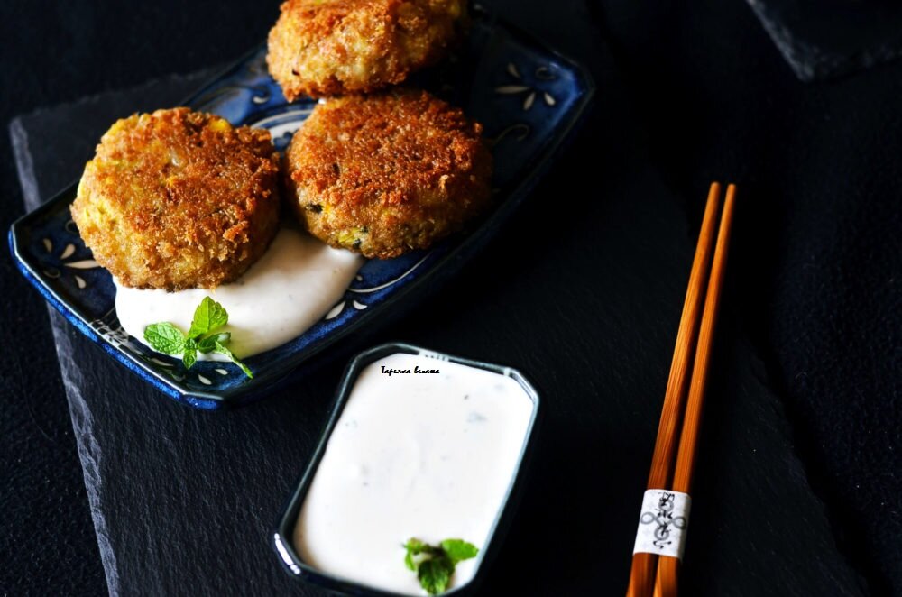 рецепт в конце Эти этичные, крабовые пирожные сделаны из удивительного ингредиента – сердцевины артишока. Артишок создаёт оригинальную текстуру, очень похожую на крабовое мясо, а дополнительно бонусом содержит много антиоксидантов и клетчатки. Я всегда думал, что самое трудное для копирования - это мясо рыбы, но здесь, для помощи, я использую водоросли. Мне нравится использовать морские водоросли как прямой источник Омега-3, а также настоящий морской вкус, как в рецепте Веганского тунца. Конечно, я мог бы выбрать обычный рецепт крабовых пирожных, я знаю несколько других очень аппетитных рецептов. Но тут, я поддался искушению, чтобы не приправить его некоторыми азиатскими ароматами. Мне нравятся ароматные тайские приправы, которые действительно делают рецепт аппетитным. Я добавил листья лайма, галангал, чеснок и немного перца чили с артишоком, луком и сахарной кукурузой. Крабовые пирожные сопровождаются мятным имбирно-лаймовым соусом. Но они также могут прекрасно сочетаться с