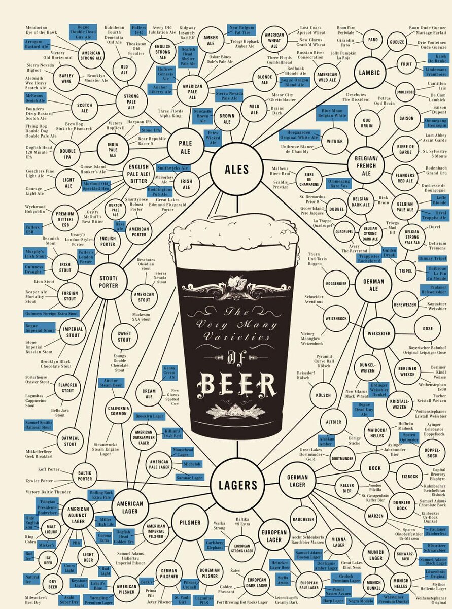 Ну и на закуску - сорта пива (не помню, где нашёл, давно у меня лежит. Надеюсь, авторских прав я не нарушил).