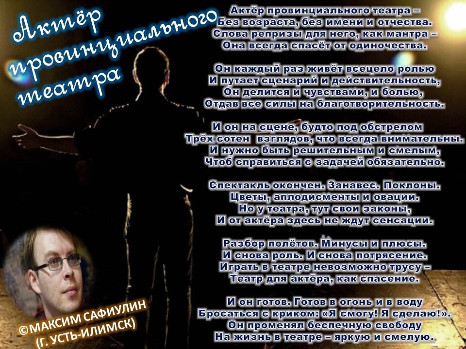Театр для актёра, как спасение. И он готов. Готов в огонь и в воду