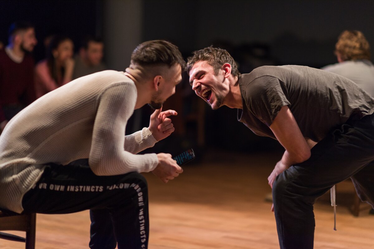 Московский #Театр_чё показал спектакль-квартирник #Маманавостоке в музее бердского радиозавода 25 января. Постановка, как и обещали, была поцанской: с выкриками из зала, импровизацией и дворовой душевностью. Ответ, что такое #Маманавостоке здесь. Спектакль начинается с опозданием, зато общение с актёрами – за двадцать минут до показа. Один из актёров, Александр Туравинин, родом из Бердска, в зале скоро появятся его мама и бабушка. Земляк нервничает, но старательно скрывает волнение: много говорит, шутит – позже он расскажет, что бабушка потерялась, но уже нашлась. Дальше разговор станет совсем обычным: собрались приятели и травят байки, например, про неудавшееся путешествие зайцами до Анапы – в рундуке* и собачнике*. Зрители быстро перенимают манеру разговора, вклиниваются в рассказ, шутят, громко смеются. Площадка для актёров новая, но во время спектакля это не ощущается. Небольшая сцена музея напоминает чуть полинявший советский дк. Три стола, на каждом простенькая лампа, один низко