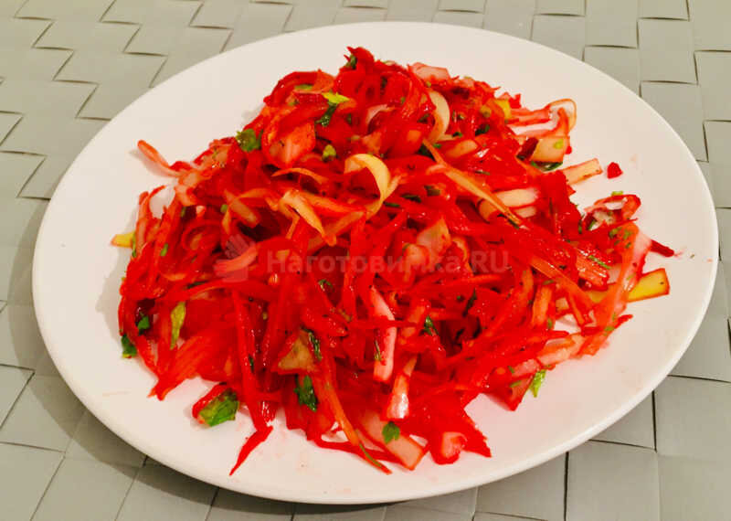 Хочу поделиться рецептом необычной тушеной капусты со свеклой. Для приготовления блюда вам понадобится небольшой набор продуктов, который - есть всегда в холодильнике. Такая вкуснятина подойдет для разгрузки рациона, после праздников или шумных застолий. И самое главное готовится блюдо очень быстро. НЕБОЛЬШОЙ НАБОР ПРОДУКТОВ КАК ПРИГОТОВИТЬ ТУШЕНУЮ КАПУСТУ СО СВЕКЛОЙ Промываем все овощи под проточной водой. Рубим мелко кубиками лук и соломкой морковь. Берём глубокий казан с покрытием и немного на дно наливаем масло. Выкладываем тушить нарезанные овощи. Также мелко натираем свеклу соломкой, это позволит блюду быстрее приготовится. Выкладываем в казан свеклу и тушим под закрытой крышкой на медленном огне. Далее режем "красиво" капусту, техника нарезки у каждой хозяйки своя. Выкладываем нарезанную капусту в казан и закрываем крышку. Иногда помешиваем блюдо. Как овощи стали мягкими мы мелко рубим зелень, солим и посыпаем специями. Еще пару минут томим на медленном огне и можно отключать.