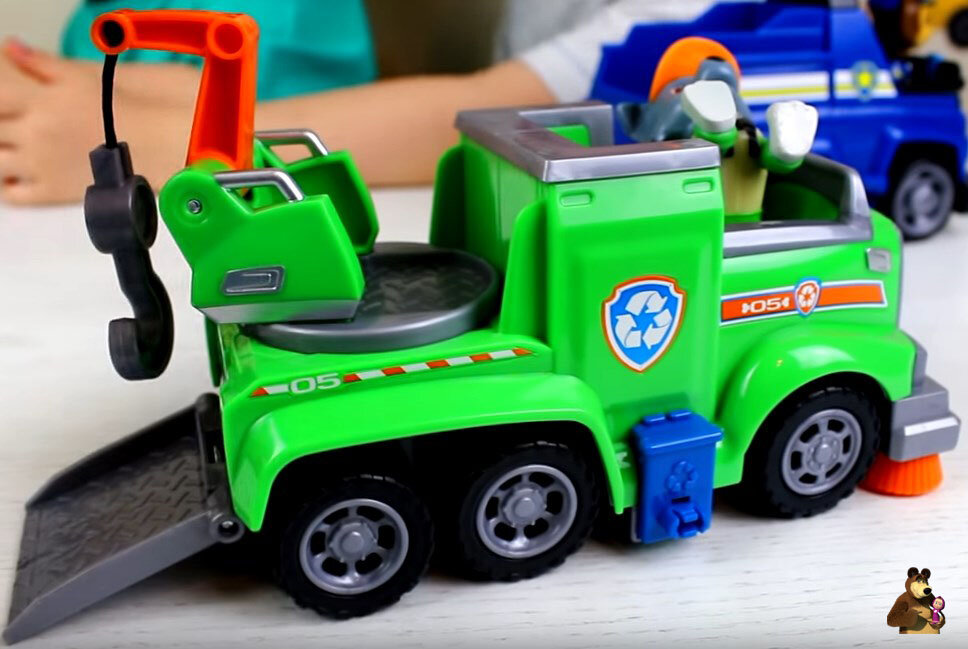 Сегодня мы рассмотрим новые игрушки из серии Щенячий патруль Чрезвычайная миссия. Автомобиль - мусоровоз Рокки трансформировался в эвакуатор! В комплекте с эвакуатором входит сам щенок Рокки. У машины есть три подвижные части, площадка под погрузку, крюк, которым можно что-то зацепить и вести и выдвижная опора для машинки. Автомобиль ярких цветов с большим количеством декоративных элементов (щетки для очистки тротуаров, мусорные баки). У самого Рокки двигаются лапки, и он идеально вписывается в кабину своей машины. Размеры игрушки 19 х 21 х 9 см. Новый полицейский автомобиль Чейза теперь вмещает несколько щенков и имеет множество скрытых возможностей. Чейз на своей машине может цеплять другие машины своим выдвигающимся крюком. А сзади находится раскладывающийся шлагбаум для перекрытия дороги. Кабина машины может подниматься, чтобы Чейз смог увидеть всю ситуацию на дорогах. Размеры фигурки Чейза: около 7 см в длину х 7 см х 3,5 см в ширину, размеры полицейской машины: 17 см в длину x