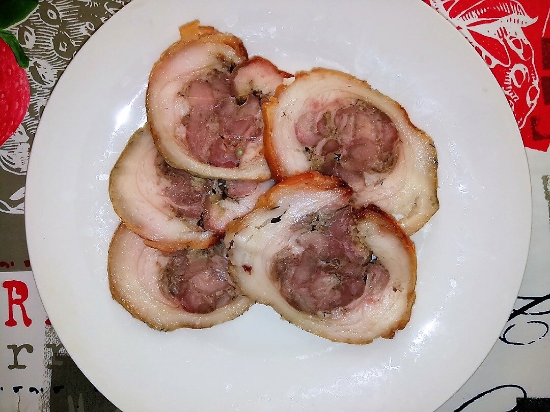 Свиная рулька, это та часть свинины из которой можно приготовить множество блюд, её можно запечь, закоптить, пожарить, добавить в холодец или нафаршировать, каждое из этих лакомств вкусны по своему, но так же есть еще вариант приготовления рульки это рулет из нее, и сегодня я поделюсь с Вами этим рецептом. Нам понадобится: И так, приступим: 1. Рульку замочить в холодной воде на 1 час. Затем ее достать и хорошенько почистить шкурку ножом, еще раз помыть. 2. Теперь нам нужно удалить кость из рульки. Для этого нам надо сделать продольный разрез по всей длине вплоть до кости. Аккуратно отделить кость. 3. Отрезаем жилки и все что Вам не нравится. Затем от рульки отрезаем мясо на пласты и решим кубиками, само сало мы тоже разрезаем ножом вдоль и поперек, но аккуратней не порежьте саму шкуру (для чего мы это делаем, для того чтобы сало лучше вытопилось и рулет получился сочнее). Теперь выкладываем кусочки мяса по всей рульке. 4. Готовим маринад для нашего рулета. В миске смешиваем измельчен