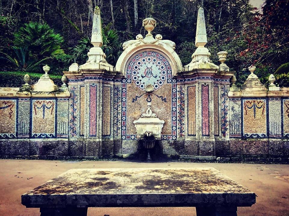 Кинта да Регалейра - неисчерпаемый источник знаний, не случайно португальский писатель Жозе Родригес душ Сантуш называл это место тайным текстом, воплощенным в камне. В таком случае одна из самых загадочных его страниц - Fonte da Abundância, Источник Изобилия. Это небольшая площадка, на которой уместились стена с чашей фонтана и колоннами, полукруглая каменная скамья с креслом в центре каменный стол перед ним.
