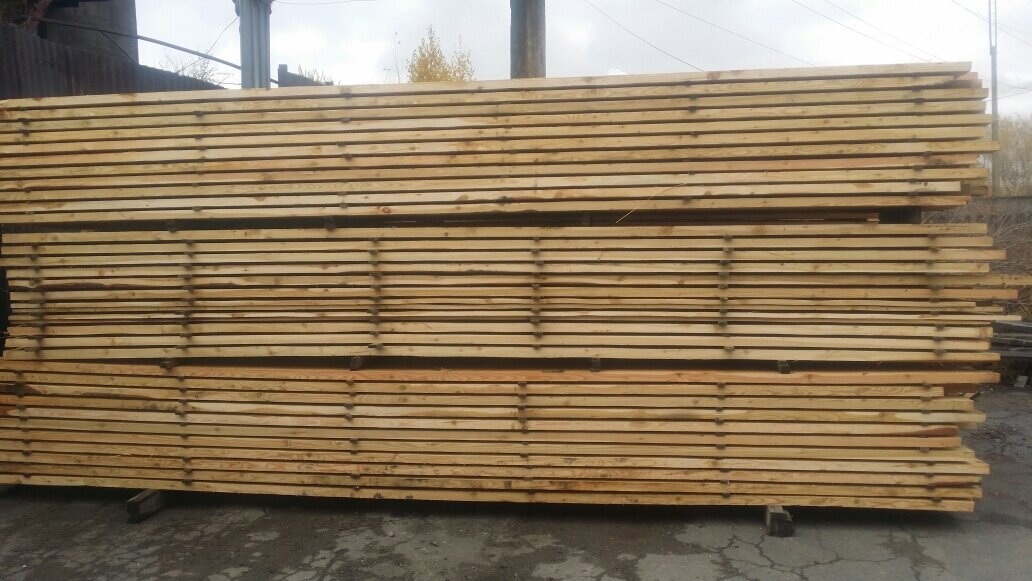 Купленные доски складываем в штабель, не забывая проложить между досками прокладки (бруски), которые обеспечат свободный приток воздуха между досками. Прокладки укладывайте строго одну над другой, чтобы доски не прогнулись. Расстояние между прокладками выдерживайте 1,5 – 2 метра (для досок толще 50 мм), 1 – 1,5 метра (для досок 30 – 50 мм), 0,8 – 1,2 метра (для досок менее 30 мм). Штабель должен быть приподнят над землёй, продуваться (вентилироваться) со всех сторон, а сверху закрыт от прямого воздействия неблагоприятных атмосферных явлений.