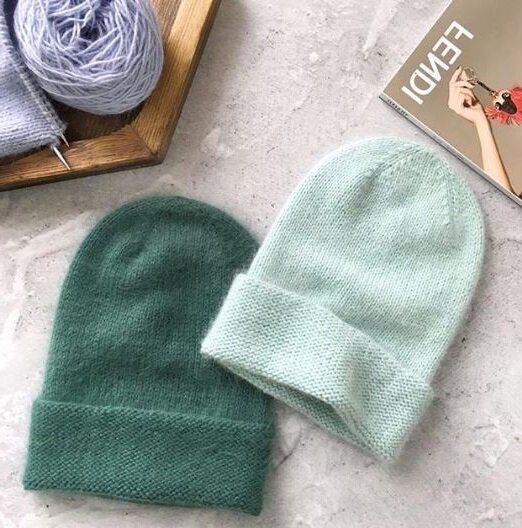 2 мотка ангоры (125м/25г), спицы 4 мм Плотность вязания: 18 п. в 10 см Порядок работы: Шапка вяжется в две нити.
