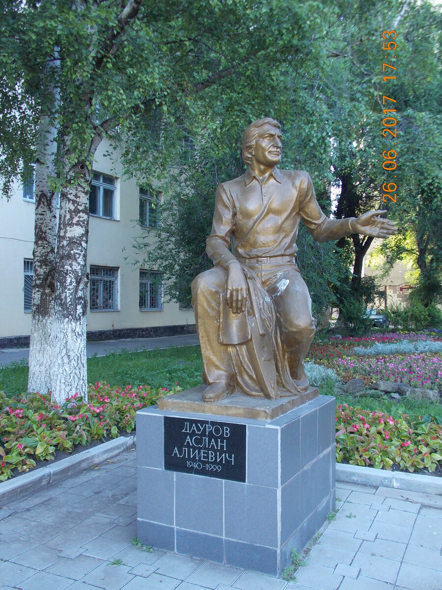 Возле здания колледжа культуры и искусств на проспекте Ленина установлен памятник известному композитору Карачаево-Черкесии Аслану Алиевичу Даурову. Мне всегда было очень интересно видеть в незнакомых городах памятники местным знаменитым людям, о которых прежде ничего не знал, а потом находить в интернете информацию об этих людях, и, таким образом, знакомиться с ними, узнавать что-то новое о жизни и культуре этих людей и всего города в целом.