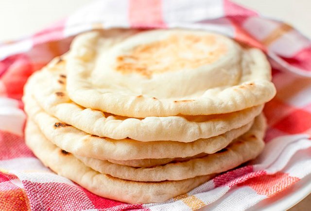 Плоские дрожжевые лепёшки из пшеничной муки, жареные на горячей сухой сковороде. Во время разогрева на сковороде тесто расслаивается и внутри образует карман - идеальное место для начинки. По вкусу оно напоминает тесто для пиццы. Ингредиенты на 8 штук: