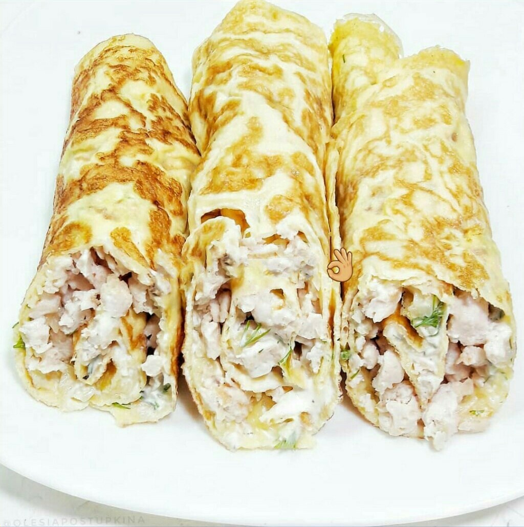 ⠀ БРИЗОЛЬ. ⠀ Ингредиенты на 3 штуки: ⠀ - 1 куриное филе (у меня 251гр) - 3 яйца - 30гр молока 2.5% - 80гр сметаны - 20гр укропа - 1 маленькая луковка - 10гр подсолнечного масла - соль, французские травы. ⠀ Куриное филе с солью, приправой и луком смолоть в фарш и обжарить. ⠀ Смешать 1 яйцо и 10гр молока, посолить и испечь блинчик. Повторить еще 2 раза. ⠀ Сыр натереть. ⠀ Сметану смешать с солью, приправой, укропом - это наш соус. ⠀ Собираем - берем блин, смазываем соусом, посыпаем сыром, выкладываем фарш и заворачиваем рулетиком. ⠀ Можно кушать и горячим и холодным, ЭТО ОЧЕНЬ ВКУСНО! ⠀
