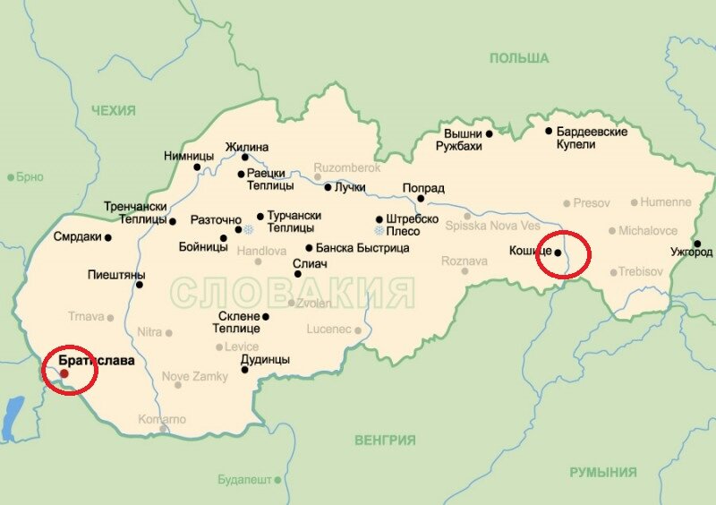 Вот где Братислава, а вот где Кошице, а вот вся Словакия.