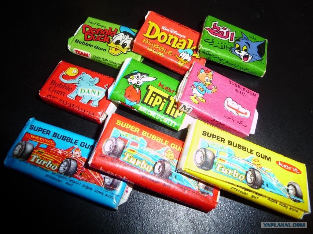 Родившимся не позднее 84 года посвящается… Жвачка, и ее роль в становлении личности. Давным-давно, когда доллар был почти как рубль, а на пустых прилавках магазинов можно было играть в настольный теннис, вдруг ниоткуда появилась ЖВАЧКА. Созданная для элементарных гигиенических целей, в нашей стране она заняла почетное место символа самодостаточности и нереальной финансовой крутизны. Попытаюсь провести классификацию, запомненных мною жвачек. Самой дорогой (1.5 рубля) была «TURBO» . В ней присутствовали бумажные вкладыши-картинки, отражавшие автомобильно-мотоциклетную тематику. Обладала стойким персиковым вкусом. Следующей по значимости и стоимости (1 рубль ) считалась жвачка «DONALD» с диснеевской дональдо-миккимаусовской концепцией. Имела яркий бананово-непонятный очень приятный вкус. Ценилась меньше, так как считалась детской, хотя по пузыренадуваемости и значительно меньшей степени липучести уверенно держало первенство. Далее в хит-параде бубль-гумов шла менее раскрученная и не столь