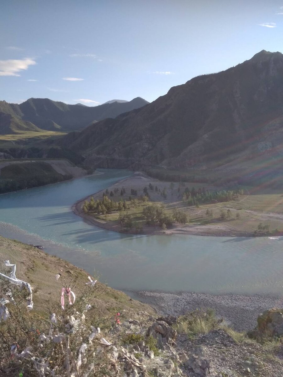 Гора Белуха. Продолжаем свое путешествие по Чуйскому тракту. Чуйский тракт поистине завораживает своей красотой. Горы становятся выше, множество горных речек. Остановка на обед. И вот только, мы делаем остановку, собачки свободно бегают, над нами начинает парить в воздухе сокол. Наши йорки для сокола, кажутся добычей и мы не отпускали собак далеко. Путешествие продолжается, посмотрели Гейзерное озеро, которое располагается вблизи поселка Акташ. Озеро- уникальный водоем, удивительный цвет воды и черные круги на поверхности, завораживают. Вот такого путешественника мы встретили, на одной базе, где остановились на ночлег. Впервые услышала и увидела породу - Петербурская орхидея, видно родство с йорками. Порода, совсем еще молодая , выведена 1997 году в Санкт-Петербурге. Марсианские горы. Настоящие чудо природы. Горы как- будто покрашены полосами в разные оттенки. На обратной дороге мы поехали на Телецкое озеро, за небольшой отпуск, всего 10 дней, хотелось как можно бол