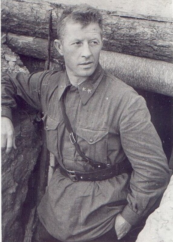 Кто это на фотографии? Это Александр Родимцев, командир 13-й Гвардейской стрелковой дивизии. На фотографии ему 37 лет. Хорошо получилась его фирменная улыбка, чуть заметная в углах губ. А особенно интересен контекст снимка. Потому что снимок делал фронтовой корреспондент около блиндажа генерала в сентябре 1942 года. Где располагался этот блиндаж? Это – Сталинград. А сам снимок сделан после того, как 13-я дивизия переправилась через Волгу и сразу же вступила в бой, потому что обстановка была критической и немцы были у берега. 15 сентября был отбит вокзал, 16 сентября штурмом взят Мамаев курган. А дальше были упорные бои. На гимнастерке Родимцева на этой фотографии можно рассмотреть отверстия под три ордена Красного Знамени, орден Ленина и Звезду Героя Советского Союза, полученную им за Испанию. Вот как он выглядел с надетыми наградами. Удивительно, но в итоге за Сталинград, в котором он совершил столько подвигов, Родимцев получит только новый орден Кутузова II степени, хоть и за ном