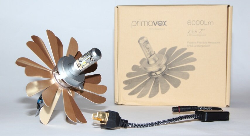 Данные лампы, в отличие от большинства, имеют съемный радиатор, который состоит из 18 алюминиевых лепестков, расположенных в два слоя и плотно сжатых между собой двумя алюминиевыми держателями. Лепестки имеют приятное глазу покрытие золотистого цвета, лепестки гнутся легко, с расположением их в фаре проблем возникнуть не должно.