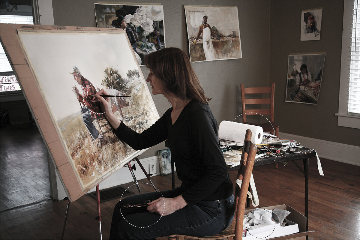 Великолепное владение цветом — отличное понимание сочетаемости цветов; Вернисаж — торжественное открытие художественной выставки. Примеры: 1. Поэтому, будучи специалистом в области искусствоведения, он участвовал в открытиях вернисажей и выставок по всему миру. 2. От художников на вернисаже не ждали ничего хорошего. Выставка — собрание каких-нибудь предметов, животных, расположенных где-нибудь для обозрения, а также место такого обозрения. Примеры: 1. Махачкалинские обувщики выставляют продукцию на международных выставках. 2. Участвовала во многих художественных выставках. Выставочный зал — помещение для демонстрации предметов, которые имеют общественный интерес. Изостудия — художественное учебное заведение. Примеры: 1. Каждый день, кроме выходных, берёт уроки в изостудии. 2. Мне особенно батики в холодной технике удаются — в изостудии хвалили. Манера — способ что-нибудь делать, та или иная особенность поведения, образ действия. Примеры: 1. Манера поведения в