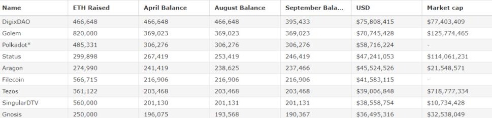С другой стороны, исследование от 9 сентября 2018 года показывает, что большинство ICO, которые привлекли капитал в Ethereum, продали почти столько же, сколько и сумма, которую они собрали в долларовом выражении.