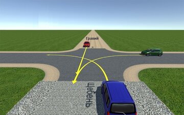 Предлагаю вам немного размять мозг и вспомнить ПДД, а чтобы интересней было, попробуйте ответить менее чем за 1 минуту на следующий вопрос. Вопрос: Должен ли красный автомобиль уступить дорогу? Варианты ответа: 1. Должен только зеленому автомобилю 2. Должен только синему автомобилю 3. Не должен никому 4. Должен обоим автомобилям Внимательно посмотрите на картинку с заданием и выберите свой вариант. А внизу статьи вас будет ждать правильный ответ. И помните, у вас есть только минута. Я проводил опрос в одной из соцсетей по этому вопросу, и 57% голосовавших дали неправильный ответ. Справитесь ли вы? Давайте разбираться с ситуацией: И так, перед нами находится экзаменационный билет с в с рисунком на котором изображен Х-образный перекресток. На этом перекрестке с трех разных сторон стоят 3 автомобиля: Нашей задачей является то, что мы должны сначала построить схему очередности разъезда транспорта, после чего узнать, кому должен и должен ли уступать красный автомобиль. Первое что мы сделаем