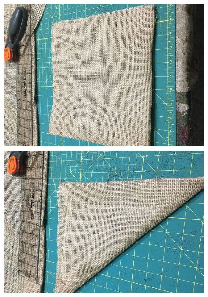 Подвесные кашпо прекрасно смотрятся на любом садовом участке или веранде. Стоят обычно они достаточно дорого. Сегодня я покажу вам как из отреза мешковины и металлического каркаса сделать необычное кашпо, которое украсит ваш дом. Для работы вам понадобятся самые простые материалы. Справиться с работой сможет даже начинающие мастерицы. Проявите немного фантазии, чтобы сделать своими руками недорогой и красивый цветочный горшок. Я сама каждый год весной украшаю свой участок кашпо с цветами. Но в этом году я решила сделать подвесные кашпо своими руками. И это оказалось очень просто. Для своих корзин я вырезала кусок мешковины размером 50 на 50 сантиметров. Сложите его пополам, чтобы у вас получился треугольник. Сложите еще раз, чтобы получить конус. Теперь отрежьте лишний край. У вас должен получиться круг из мешковины. Из плотной проволоки сделайте каркас сами или купите что-то похожее. Теперь вам нужно измерить окружность верхней части каркаса и отрезать соответствующую полоску мешковин