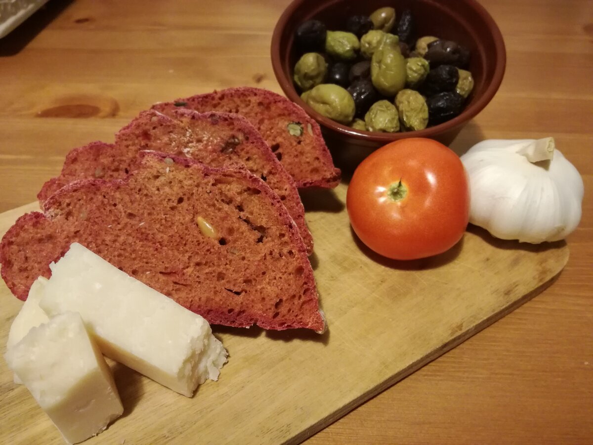 Мой муж любит печь домашний хлеб, и часто пробует различные рецепты. Вот и на этот раз он нашел рецепт греческого хлебушка со свеклой!! и зная мою любовь к этому овощу решил попробовать испечь). Мы конечно мало представляли, что получится, но результат превзошел все мыслимые и немыслимые ожидания. Итак-печем греческий свекольный хлеб- поехали! Нам понадобится: 1 пакетик сухих дрожжей 200 мл воды 1 ч.л. соли 250 г вареной свеклы 800 г муки семечки, орехи Способ приготовления: дрожжи разводим в теплой воде, добавляем щепотку соли и оставляем на 10 минут заранее отваренную свеклу чистим, режем на кусочки и измельчаем в блендере до консистенции пюре (у нас получилось 5 очень маленьких свеколок) добавляем полученное пюре в дрожжи и перемешиваем затем постепенно вводим муку. У нас ушло около 800 г, хотя в изначальном рецепте было 450г -все зависит от водянистости свеклы (я добавляла немного воды в блендер, чтобы пюре было без кусочков), поэтому смотрите, чтобы тесто было крутое и не прилипал