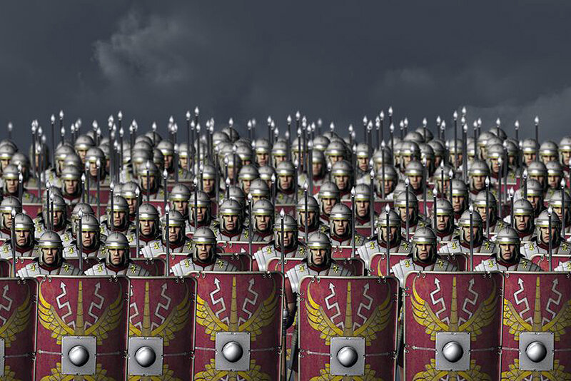 Сразу надо сказать, что праздник в легионе – это не выходной и не дружеская попойка. Всё было чинно-благородно и представляло собой что-то вроде военного ритуала. Так вот, всевозможных знаменательных дат в легионе было тьма-тьмущая. Первой шла присяга, «sacramentum», принимавшаяся два раза в год: в начале января и в день рождения действующего императора. К этому дню все солдаты должны были вернуться из отпусков, в которые они могли пойти в ноябре-декабре, после окончания военного сезона. Разумеется, большим праздником было основание Рима и основание воинской части. Ещё одним важным обрядом было «очищение» (lustratio) войска перед вступлением на вражескую землю. А после военной компании в октябре совершалось очищение оружия и военных труб, «armilustrium». Любое важное действие – начало битвы или компании предварялось жертвоприношением и гаданием по жертвенным внутренностям. Даже если полководец не был суеверным, для спокойствия солдат он должен был сделать вид, что во всё это верит. Ин