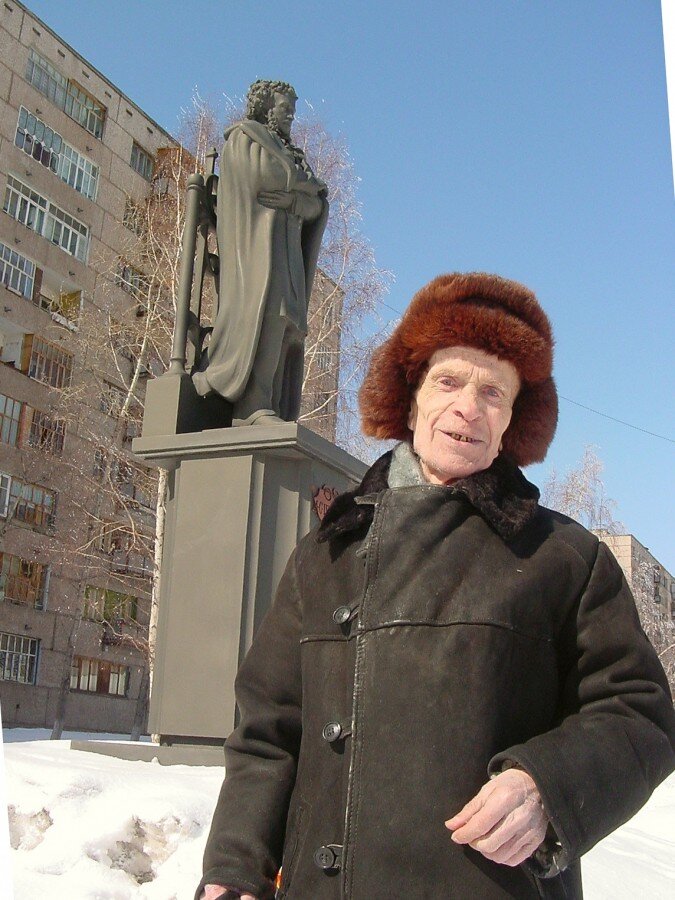 Пушкинист Семён Александрович Саунин( 02.07.1927 – 01.07.2007) у памятника А.А.Пушкину в Братске.