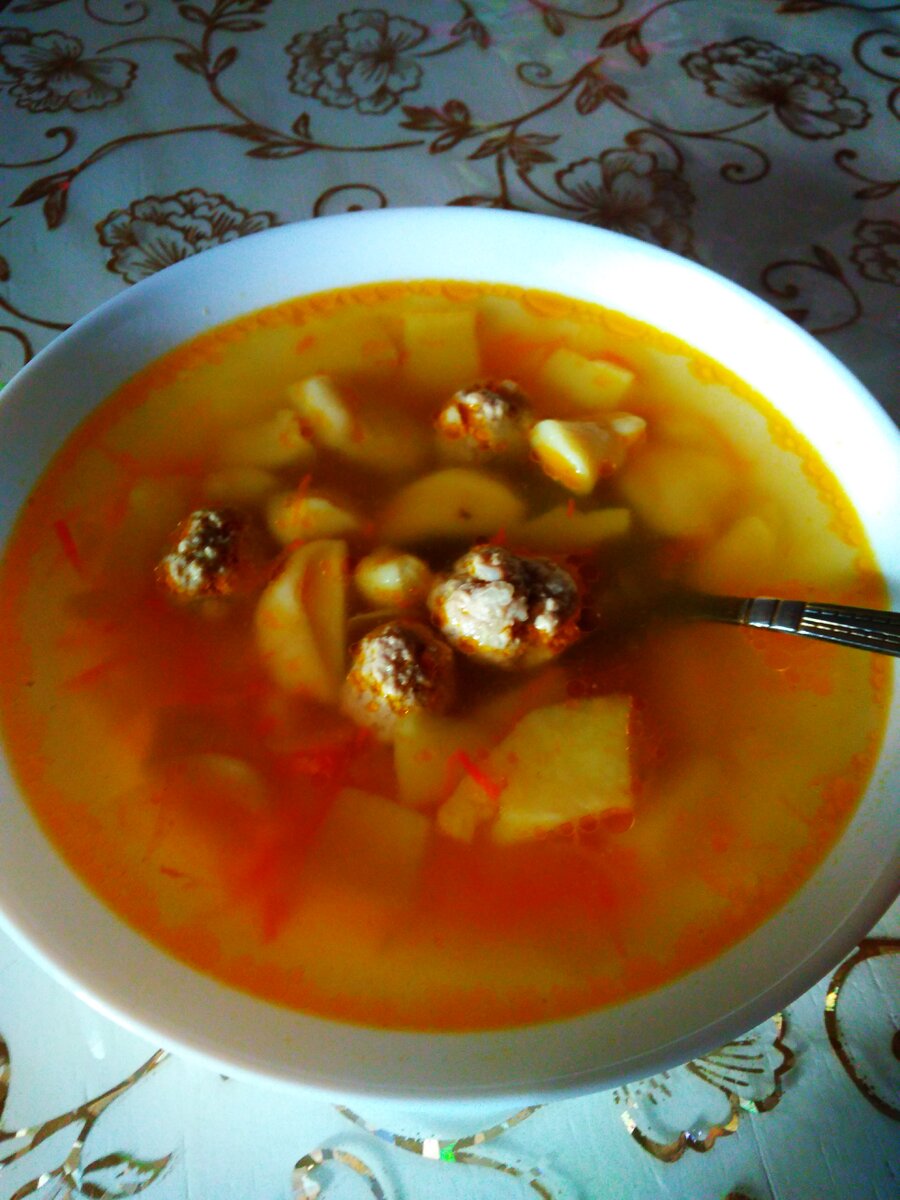 Легкий и вкусный суп, который готовится 30 минут. Этот суп приживется в каждой семье, его любят дети за то, что он не жирный, в нем плавают интересные шарики. Впрочем, и самих детей можно привлечь в процесс готовки. Берем кастрюлю в которой будет вариться суп ( уменя расчет на 4-х литровую кастрюлю) и режем мелко 1-2- луковици, трем на мелкой терке 1 большую морковь. Обжариваем прямо в кастрюле на 2 ст.ложках растительного масла. Обжариваем слегка. Далее наливаем воду и кладем 4-5 крупных, резаных на дольки картофелины, солим по вкусу. Ждем когда картофель почти сварится, а тем временем замешиваем тесто на клецки. Это очень легко. 100 мл воды наливаем в глубокую миску и постепенно добавляем муку. Замешиваем упругое тесто, как на пельмени. Весь процесс замеса занимает три-пять минут. Пусть минут пять тесто отдохнет, у нас в супе как раз картофель дойдет до нужной консистенции. Он дожен быть аль-денте, если это вообще применимо к картофелю. Т.е. быть почти готовым. Обратите внимание