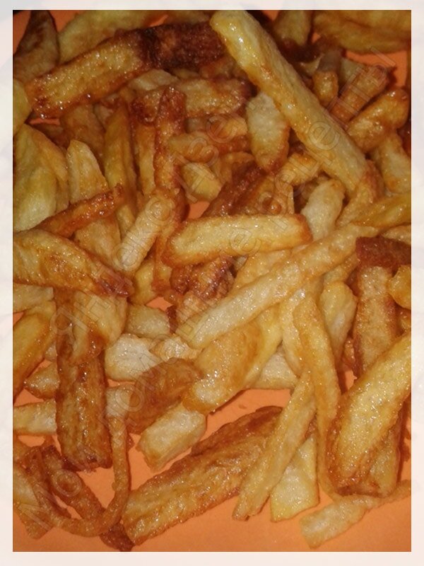 Наверное это самый популярный и любимый гарнир. Но не всегда хочется тратить большое количество масла для фритюра, особенно когда картошки нужно приготовить немного. Шаг 1. Нужное количество картошки очищаем и моем. Шаг 2. Нарезаем картошку брусочками 7-10 миллиметров. Шаг 3. Кладем нарезанную картошку в дуршлаг (чтобы стекал сок), солим по вкусу, хорошо перемешиваем. Для жарки картошки желательно использовать высокую кастрюлю, так как масло может вспениться и "убежать". Шаг 4. Наливаем растительное масло, высотой 3-4 сантиметра. Хорошо нагреваем (опустите кусочек картошки, масло должно зашипеть). Шаг 5. Теперь осторожно кладем картошку в горячее масло. Соотношение картошки и масла примерно 1:3. Постоянно помешивайте картошку, пока она не всплывет. Шаг 6. Продолжаем жарить картошку до румяной корочки, помешивая. Шаг 7. Готовую картошку вынимаем шумовкой и выкладываем на бумажное полотенце, чтобы впиталось лишнее масло. Приятного аппетита! Готовую картошку можно поперчить или посыпа