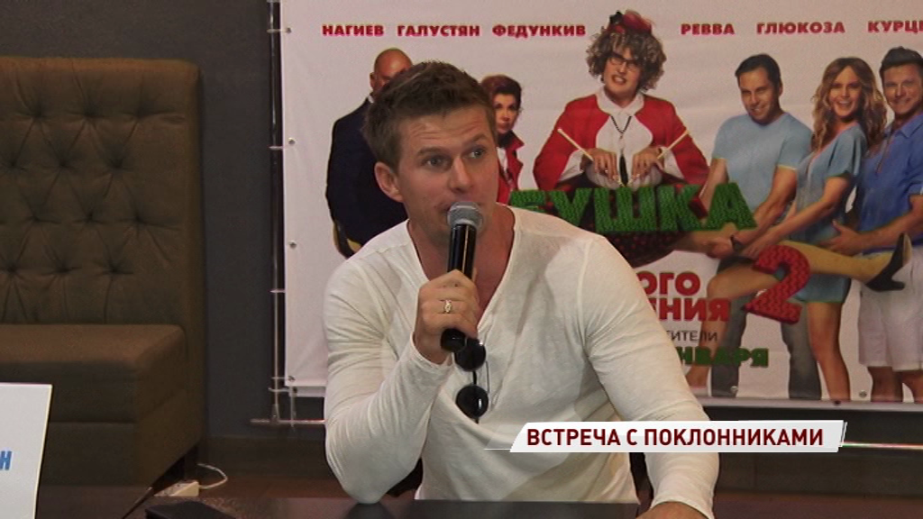 Известный российский актер Роман Курцын презентовал ярославцам фильм «Бабушка легкого поведения 2». Встреча проходила в кинотеатре «Киноформат». Роман ответил на вопросы поклонников и провел фотосессию. О чем спрашивали актера и с кем ему пришлось соревноваться? С подробностями Наталья Антонова. Зрители томятся в ожидании, волнительно сжимая карточки для автографов и вертя телефоны в руках. Спустя десять минут в зал буквально врывается натренированный, голубоглазый актер. Поклонники, пришедшие на встречу, сначала заметно тушуются и стесняются задавать вопросы. Актер берет инициативу на себя, самостоятельно рассказывает о съемках и своем герое. - Это изначально был просто хоккеист, а когда мы уже начали развивать роль и я пришел на этот проект, то мы решили сделать такого провинциального парня, который стал звездой НХЛ, у которого очень много денег, но вот эта провинция из него не вылетела. Он сразу стал такой яркий, сочный, с костромским говором. Такая звезда НХЛ, которая выбилась