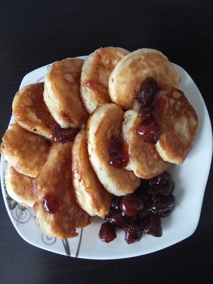 Ингридиенты: Мука пшеничная - 600гр, Вода - 80мл, Кефир - 500мл, Соль - 1/2 ч.л., Сода - 1 ч.л, Сахар - 5 с.л. Яйца - 2шт. Способ приготовления: 1. В кастрюльке смешиваем кефир с водой и подогреваем на маленьком огне. В другой миске смешиваем яйца, соль и сахар. Затем добавляем наш теплый кефир и все хорошо перемешиваем. Перемешивать нужно венчиком, а не миксером, иначе оладьи не выростут. Затем добавляем муку. Муку нужно добавлять маленькими порциями чтобы не образовывались комочки. Тесто должно получиться как густая сметанна. Если вы добавили муки больше чем надо и тесто получилось слишком густым, то добавьте немного теплого кефира. После того как добавили муку, добавляем соду и хорошо перемешиваем. Вот такое тесто в итоге должно получиться. 2. Хорошо разогреваем сковороду с растительным маслом и выкладываем на нее столовой ложкой наше тесто. Одна ложка это один оладушек. Обжариваем оладьи с двух сторон. Что здесь очень важно! 1. Жарить оладьи нужно на среднем огне. Здесь очень важн