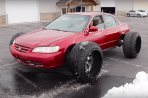 Информация с сайта www.novosti.top Эти же механики недавно поставили пикап на миниатюрные колеса. Honda Accord оснастили огромными колесами. Для того чтобы автомобилем все еще можно было управлять из 13-миллиметровой стали изготовили специальные крепежные пластины, сообщает со ссылкой на . Их приварили к проставке длиной 305 миллиметров. На такой машине с 37-дюймовым покрышками владельцу удалось даже немного поездить по снегу. Ранее Bug Bmx заменили те самые 24-дюймовые колеса пикапа на 12-дюймовые. Их пришлось устанавливать через 76-миллиметровые проставки.Проблему с разницей в количестве крепежных отверстий решили с помощью плазменной горелки. Несмотря на значительный вес пикапа, авторам даже удалось сделать бернаут.