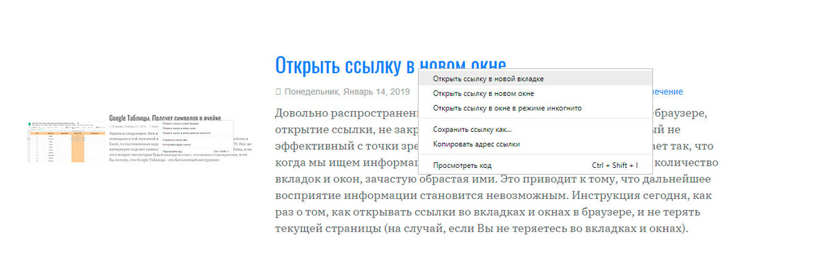 Также, как и в предыдущем случае, открытие вкладки заложено в контекстном меню браузера. Просто наведите курсор на ссылку - нажмите правой клавишей мыши - в контекстном меню выберите опцию “Открыть ссылку в новой вкладке”.