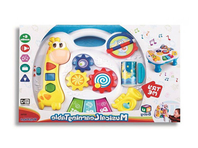 Музыка неотъемлемая часть нашей жизни. Она может поднять настроение как взрослым, так и детям. А благодаря музыкальным игрушкам Ваш ребенок будет играть и веселиться целый день. Так давайте выберем лучшего представителя этого важно класса. Чтобы она была из качественного материала и хорошо звучала. А также не мало важной будет если она будет приятная на ощупь. Ну и с какой-нибудь особенностью, но в этом мы разберемся чуть дальше. Музыкальный развивающий столик Разноцветный столик на ножках, которые легко снимаются и его можно прикрепить к кроватке. По центру расположены шестеренки, крутя которые начинают издаваться звуки. Так же внизу 3 клавиши с названиями нот, которые проигрывают музыку. А еще труба и звуки дня и ночи и все это светится разными красками на желтом жирафе. При всем при этом есть еще книжечка с разными животными, перелистывая которую раздаются звуки характерные этим питомцам. Книжка «Стишки для малышей» Великолепная книга на каждой странице который написан стишок. Каж