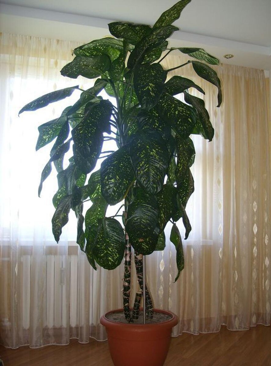 Очень часто в статьях о диффенбахии в категоричной форме описывается ее ядовитость, вред для воздуха, для жителей квартиры и вообще энергетический вампиризм. Я не хочу отрицать эту информацию целиком, хочу только поделиться своим опытом "сожительствования" с огромной диффенбахией в течение нескольких десятилетий. Миф1. При попадании сока диффенбахии немедленно образуется ожог. Следует незамедлительно промыть рану (!) теплой водой с мылом. Что на самом деле. Не раз мне попадал сок на руку. И не два. Ни ожога, ни покраснения, ни даже какого-либо дискомфорта я не испытывала. Да, я - дитя интернета, потому как можно быстрее старалась вымыть руки, если на них попадал сок. Но это не мгновенно. Это минут 5, а может и больше. Никаких изменений на коже. В глаза или на слизистые сок не попадал - потому ничего сказать не могу. Но лучше не экспериментировать;) Миф 2. В народе диффенбахии присвоено название "мужегон". Дескать, если незамужней девушке завести цветок, то мужа она не найдет и замуж