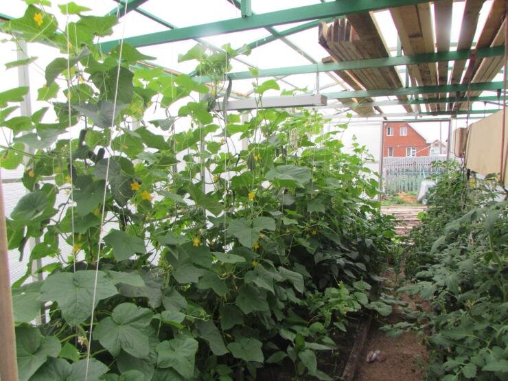 В прямоугольной теплице пришлось более тщательно планировать посадки и подбирать растения по высоте, чтобы они не затеняли друг друга