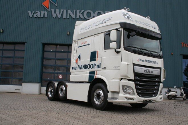 Где-то полтора года назад компания Van Winkoop, построила уникальный грузовик DAF-XXF 510. Кабина этого тягача была удлинена на 90 сантиметров, получив таким образом спальник поистине американских размеров. Затем грузовик был продан в Германию, Roland Graf из Ludwigslust и был представлен на выставке IAA в Ганновере, после чего через несколько месяцев он вернулся к голландцам в Van Winkoop. Так XXF выглядел во время постройки: Почему же его вернули назад? Roland Graf пожелал особой окраски своего нового автомобиля, захотел отличить его от других грузовиков не только удлиненной кабиной. Было решено выкрасить всю кабину в ярко зеленый цвет, и дополнительно нанесли на все это аэрографию с пиратскими мотивами, были изображены классические парусные корабли на боках огромной кабины. За нанесение этого лакокрасочного покрытия отвечала именно компания Van Winkoop, которая в середине декабря, когда DAF XXF уже был окрашена, представила на своей Facebook странице следующие фотографии: Доработки