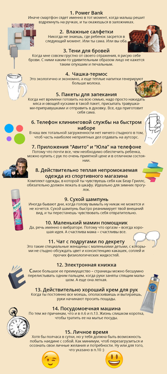 Мама – тоже человек. Она все еще остается женщиной, пусть иногда и забывает об этом. В помощь ей, Анастасия Ушанова составила список из 15 вещей, которые всегда хорошо иметь под рукой и реанимировать себя. Автор: Анастасия Ушанова Источник: онлайн-журнал the ZHENSHINY Подписаться на обновления и получать статьи первой