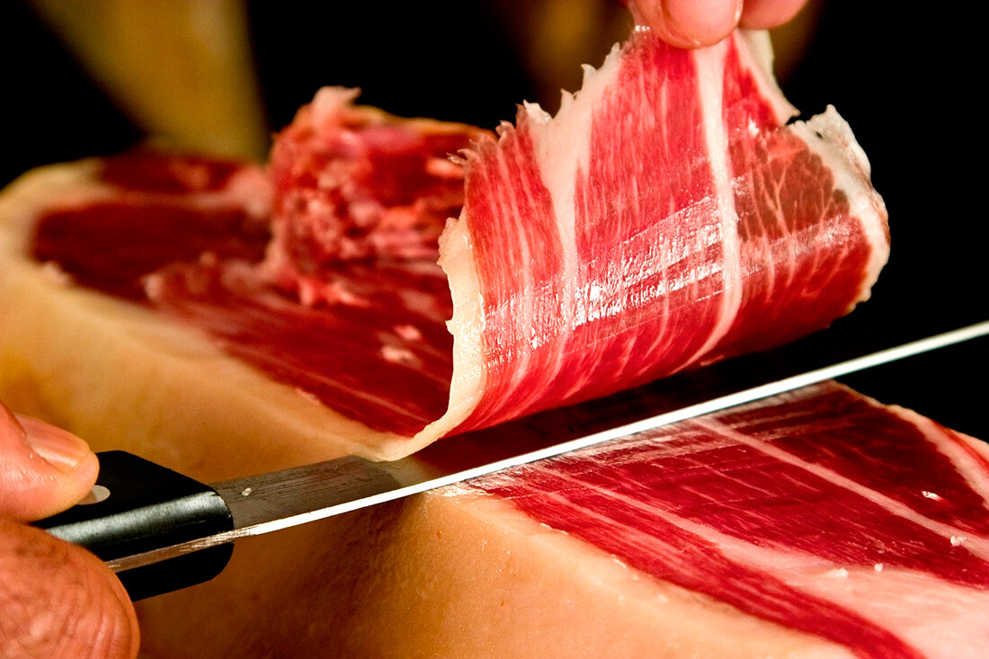 Легендарный испанский хамон – один из самых желанных деликатесов практически на каждом столе. Итак, заветная свиная нога уже перед вами, и теперь начинается самая интересная, можно сказать, ритуальная часть – нарезка хамона. От правильности нарезки напрямую зависят вкусовые ощущения от продукта, а ошибки, допущенные в процессе, могут изрядно подпортить результат многодневной работы его производителей. Для испанцев нарезание хамона – это настоящее искусство, которому специально учатся и оттачивают на практике. Вы уже начали волноваться, и вам страшновато подойти к ноге? Не стоит переживать раньше времени. Воспользовавшись советами от мастеров своего дела, профессиональных нарезчиков хамона, вы легко справитесь с этой задачей, а наградой за ваш труд станет изысканный вкус и истинное наслаждение гурмана. Оборудование для нарезки хамона Для правильной нарезки хамона вам понадобится в первую очередь приспособление для закрепления свиной ноги, или хамонера. В этой специальной подставке око