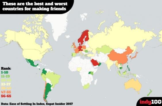 Швеция постоянно попадает в рейтинги стран, где трудно заводить друзей. В последнем, что мне попался на глаза страна занимает 65 и последнее место. Давайте выясним, как обстоят дела в действительности. Только посмотрите на этот рейтинг ниже. Швеция опять попала в рейтинг "худших стран для дружбы" в 2017 году. Эту тему тут любят обсуждать, как и то, что со шведами трудно подружиться. Все, что я тут напишу - это мой опыт, и он может не сходиться с любым другим. Мы с мужем приехали в Швецию в 2014 году. Сейчас, среди моих друзей здесь, тех, с кем я регулярно встречаюсь, гуляю, хожу на концерты, практически одни иностранцы. Такие же, как я, приехавшие в Швецию. Да, может быть это и говорило бы нам о том, что шведы неохотно знакомятся и дружат с иностранцами. И правда, среди моих знакомых есть шведы, но, мы очень редко видимся, максимум на фику раз в полгода. Знаете, я думаю, что большую роль играет ваш круг общения. Если вы работаете в шведском коллективе, или учились в шведской гимназии
