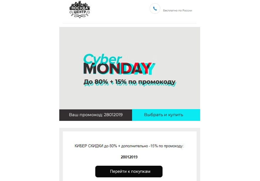 Зачастили российские ритейлеры с распродажами под различными «соусами»: то «черная пятница», то новогодние распродажи плавно перетекающие в рождественские, то киберпонедельник. О последнем многие ритейлеры объявили в минувший понедельник, снабдив потенциальных покупателей подобными инструкциями: Рассмотрим условия такой распродажи товаров на примере автора публикации, получившего рассылку от «Посуда-центра». Итак, берем заварочный чайник и наливаем чаю.. Хотя, стоп! Давайте сначала купим его: вот этот фарфоровый чайник Arista Rose Esprado объемом 1,22 литра до киберпонедельника стоил 1 299 рублей в розницу в магазинах «Посуда-центра» и 1 104 рубля на сайте компании. При этом при регистрации на в Интернет-магазине «Посуда-центра» и подписке на новости компании можно было получить 15% скидки на все покупки. Итоговая стоимость товара составила 938,4 рубля (автор приобрел его 24 января). Уже после объявления «кибер скидок до минус 80%» 28 января в Интернет-магазине он стал стоить 1 299 ру