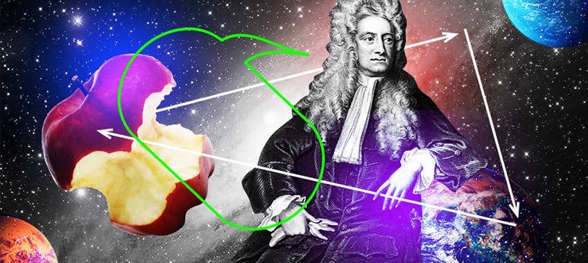 Если верить легенде, перед его домом росла очень старая яблоня. Однажды, увидев, как яблоко упало с ветки, Ньютон подумал, что что-то должно было потянуть плод вниз. Значит, сила, притянувшая яблоко, должна распространяться от Земли вверх, по меньшей мере до вершины яблони. А может, она достигает Луны? Если так, то она должна повлиять и на ее орбиту.